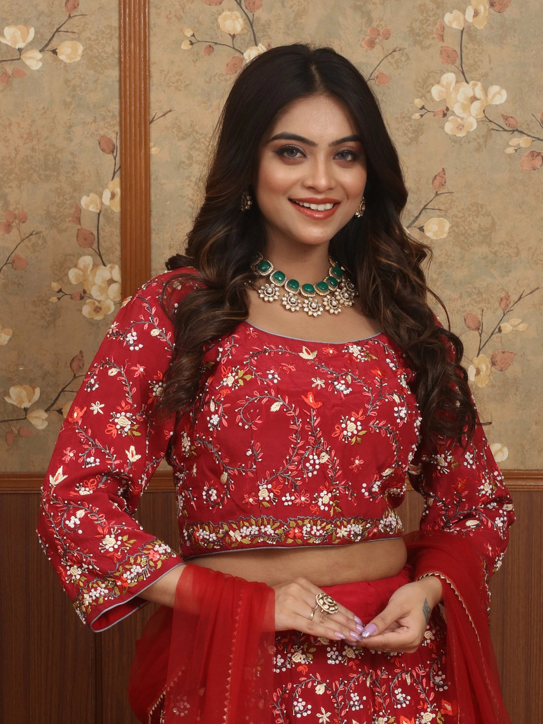✔ Pair with gold or polki jewellery for a classic bridal or festive look.
