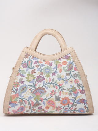 Handcrafted Cane & Rattan Sling Bag in Tan Faux Leather | 3-Pocket Crossbody
